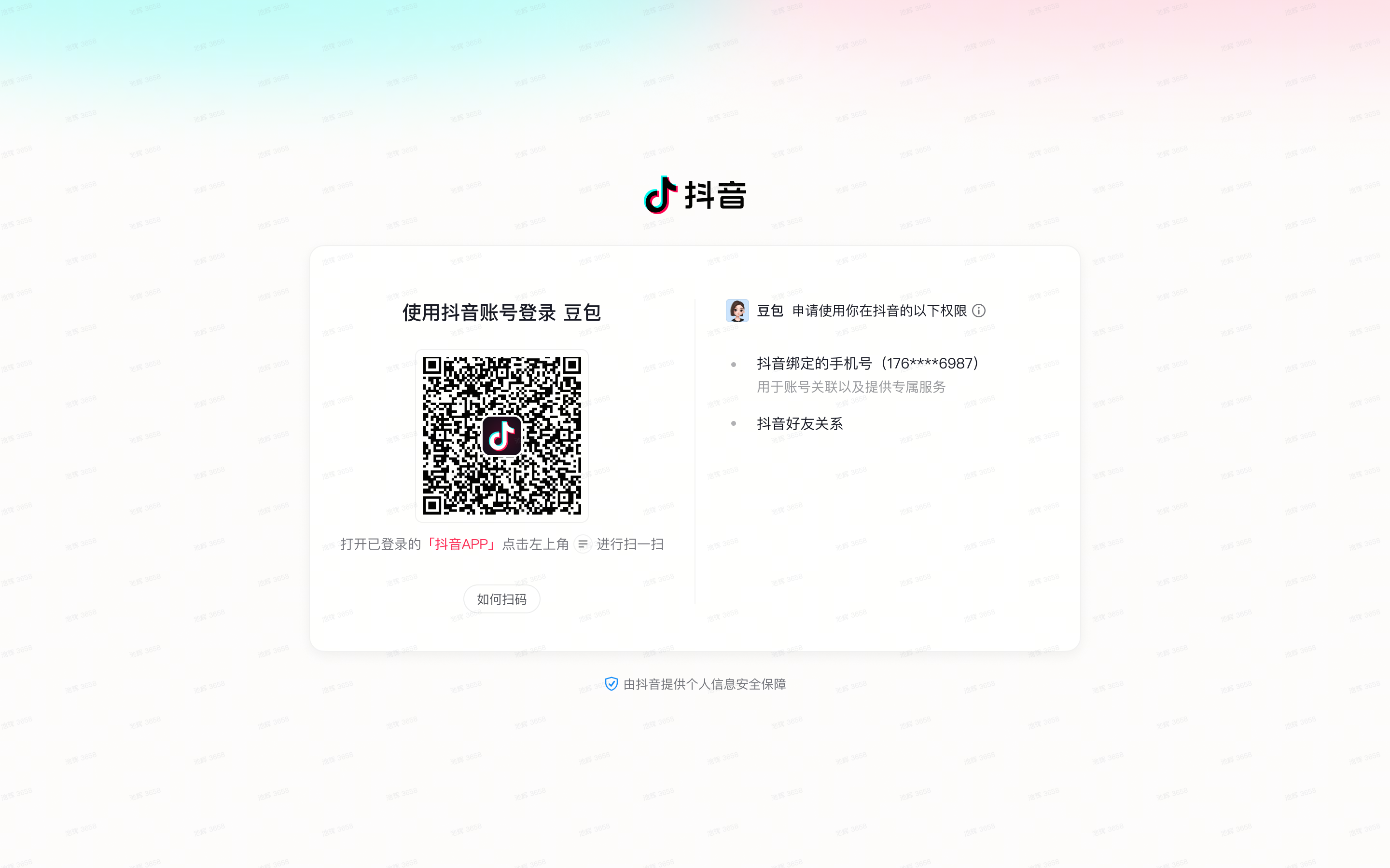 用户授权支持 PC 端和客户端,授权形式支持 抖音扫码登录授权 形式。