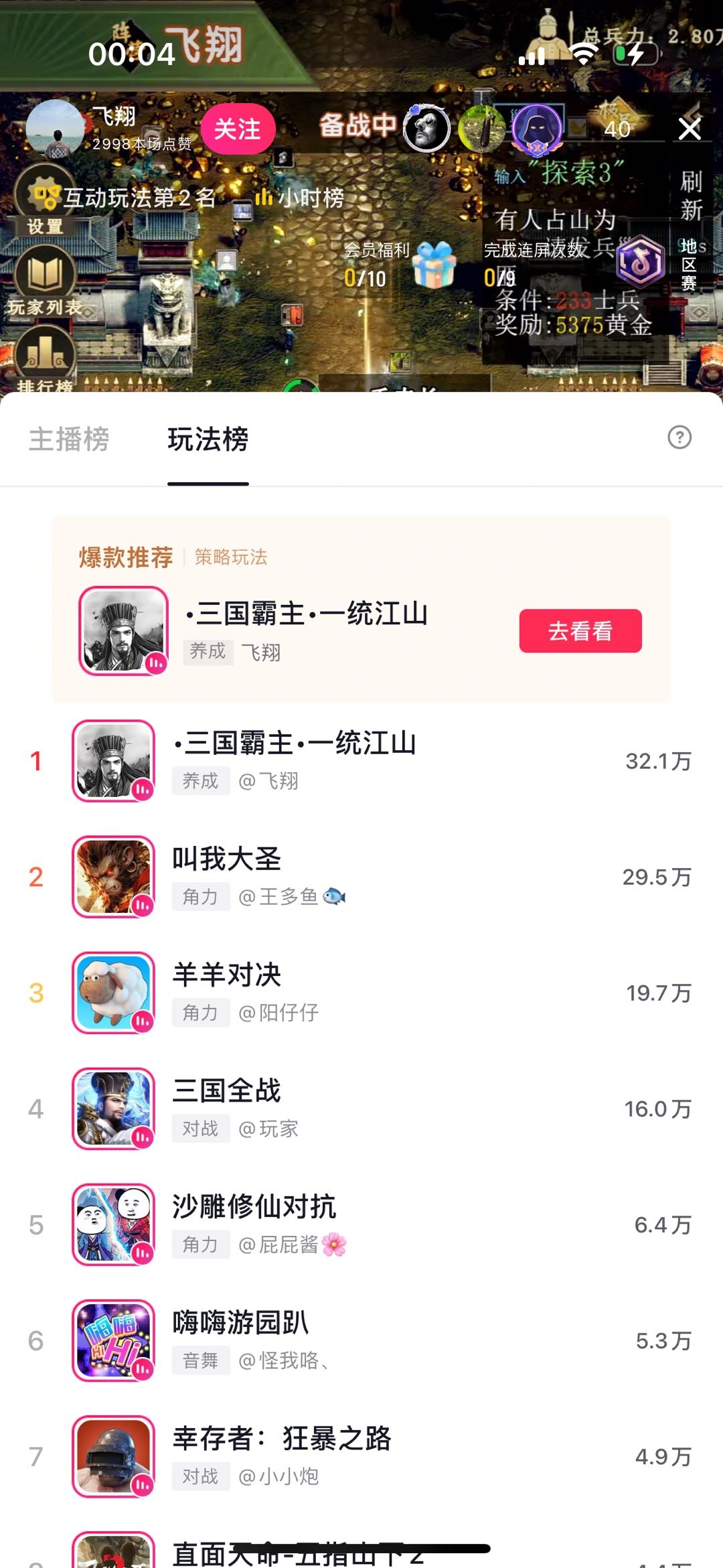 - ◦玩法已适配移动端开播场景