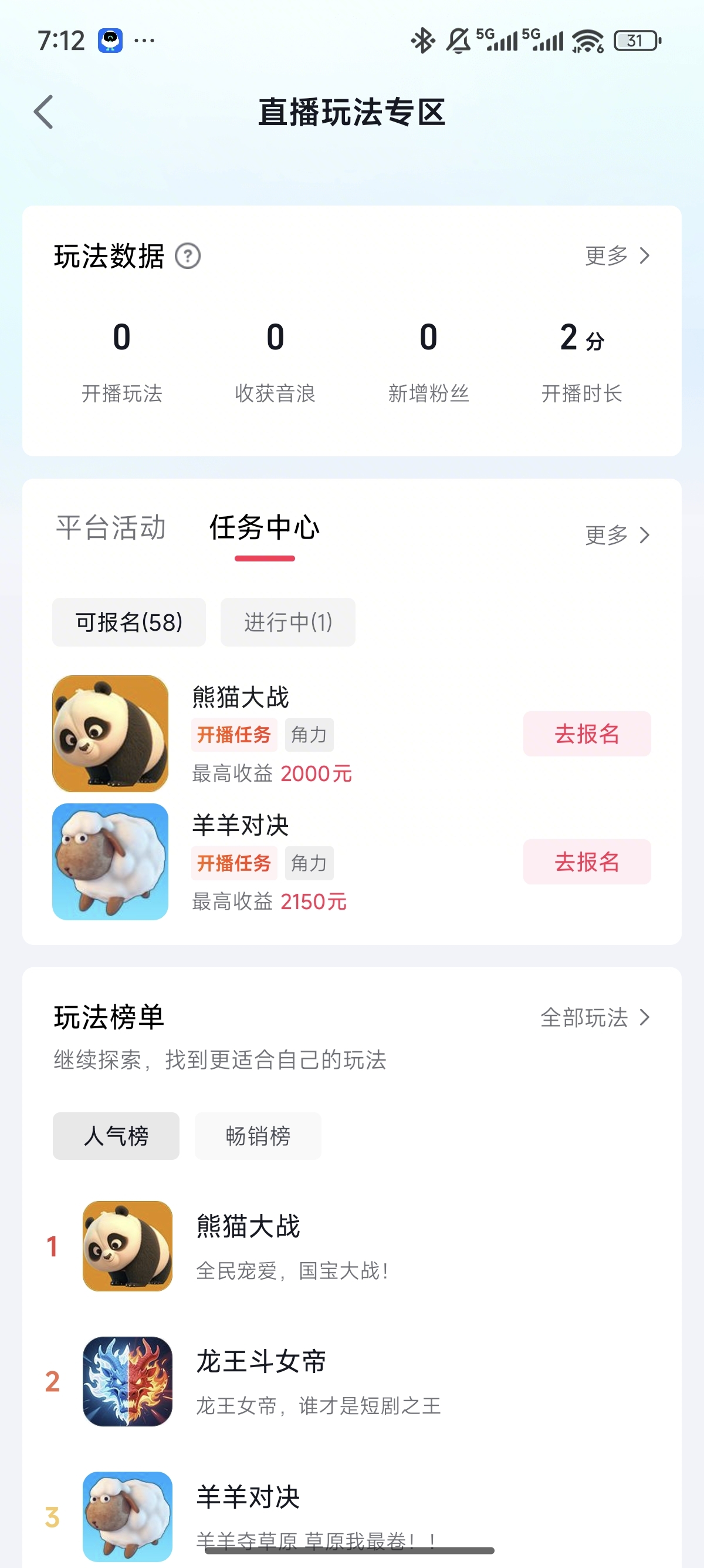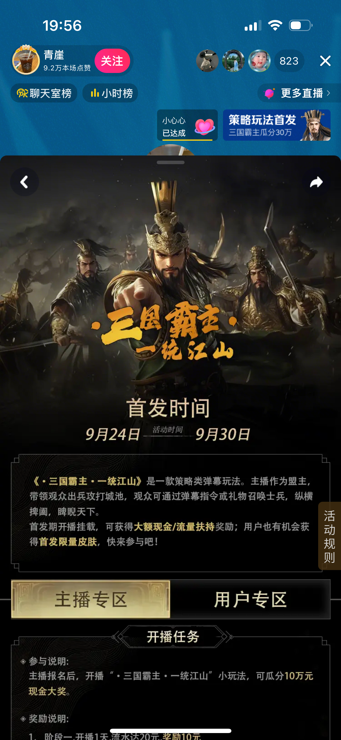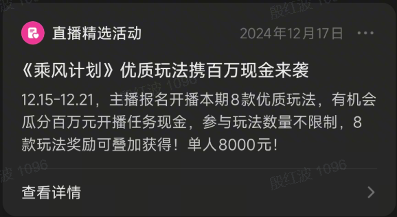 平台鼓励入选专题的玩法,同期配合推出主播任务。例如,在专题推广期间,通过 “开播任务” 或 “登榜任务” 进一步放大曝光效果,承接住专题带来的流量。